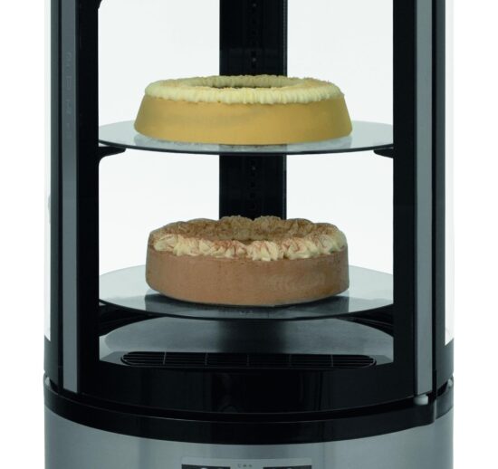VITRINE REFRIGEREE TYPE GOURMET, 100L, +2°C/+8°C 3 ETAGERES RONDES, AVEC ECLAIRAGE LED 2 COTES