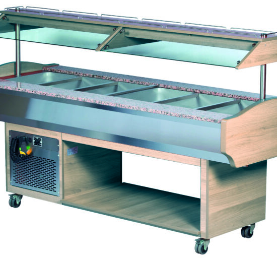 BUFFET REFRIGERE CENTRAL, FROID STATIQUE 0°C/+10°C 6GN 1/1, CORPS NOYER FONCE, DESSUS GRANIT NOIR
