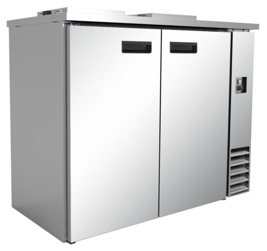 CAVE DE CONSERVATION POISSONS FUMES 0/+6°C A 25°C 60% HYGROMETRIE, EXTERIEUR INOX, 2 PORTES VITREES