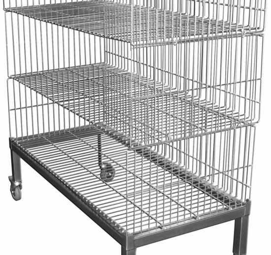 CHARIOT A BARQUETTES FILAIRE INOX 304 – 3 NIVEAUX AVEC PANIERS EMBOITES