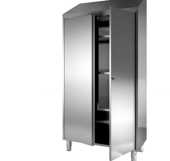 ARMOIRE HAUTE INOX, TOIT PENTE, 1 PORTE BATTANTE DOUBLEE, 3 ETAGERES REGLABLES