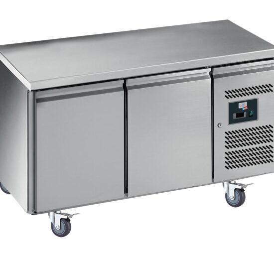 DESSERTE REFRIGEREE INOX CENTRALE, -2/+8°C, 2 PORTES GN1/1 SUR ROULETTES Ø 100 MM
