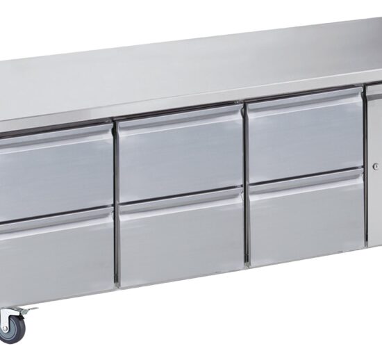 DESSERTE REFRIGEREE INOX CENTRALE -2/+8°C 3X2 TIROIRS, SUR ROULETTES Ø 100MM