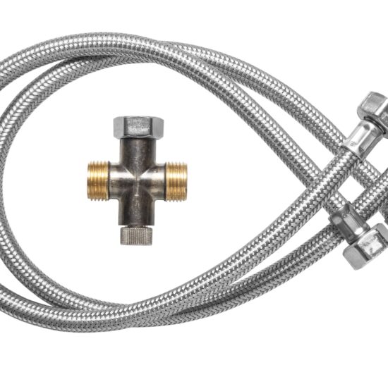 ENSEMBLE DE 2 FLEXIBLES INOX F-1/2 – F1/2 600 MM +1 PRE-MELANGEUR A REGLAGE MECANIQUE
