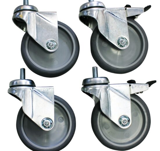 ENSEMBLE DE 4 ROULETTES CHAPE INOX D.125 MM DONT 2 AF POUR GAMME CONFOR’TABLE A MANIVELLE