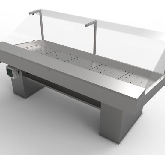 ETAL NEUTRE DROIT, INOX 304, VITRES BASSES DROITES BASCULANTES, PIEDS OBLONGS