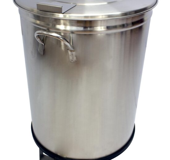 BAC A DECHETS 95L INOX ROULANT (2 ROULETTES FIXES) COUVERCLE DEMONTABLE A FERMETURE AMORTIE