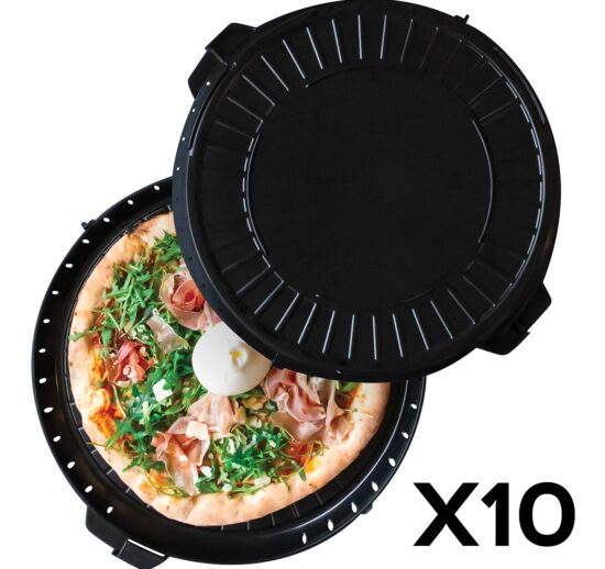 LOT DE 10 BOITES DE TRANSPORT RONDE REUTILISABLE COLORIS NOIR, EN MATIERE PLASTIQUE, POLYETHYLENE