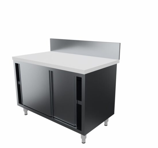 MEUBLE BAS INOX ADOSSE, P. COULISSANTES DOUBLEES, DESSUS POLY EP. 40 MM