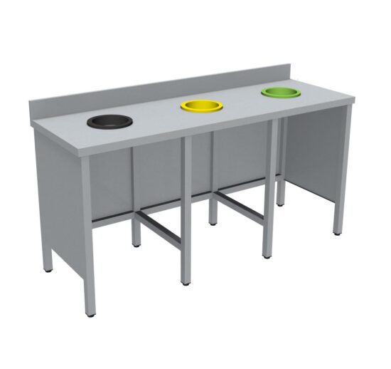 MEUBLE DE TRI INOX 304, SANS PORTE, SANS RAMPE A PLATEAUX, AVEC DOSSERET, 3 TVO : 1N+1J+1V