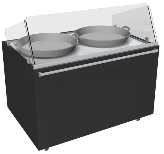 MEUBLE TRADITIONNEL DOUBLE PAELLA CHAUFFANT 300°C 2 PLAQUES CHAUFFANTES D.500MM,VITRE AVANT INCLINEE