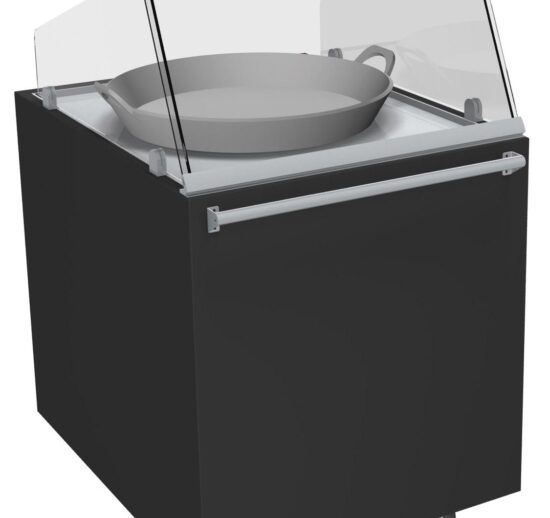 MEUBLE TRADITIONNEL PAELLA CHAUFFANT 300°C PLAQUE CHAUFFANTE D.500MM, VITRE AVANT INCLINEE