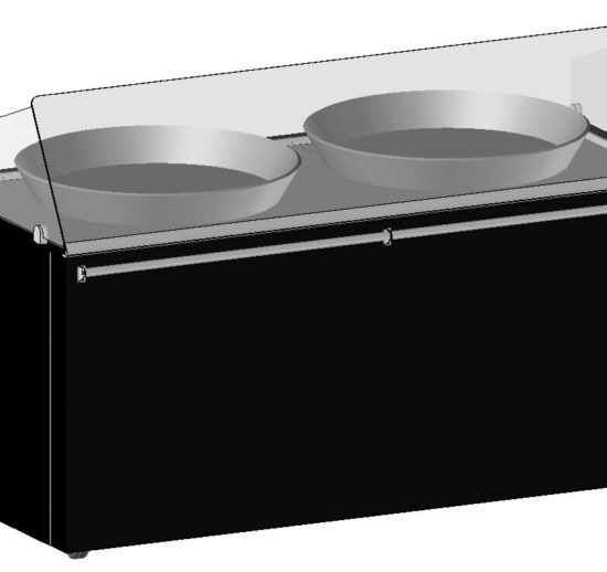 MEUBLE TRADITIONNEL DOUBLE PAELLA CHAUFFANT 300°C 2 PLAQUES CHAUFFANTES D.500MM,VITRE AVANT INCLINEE