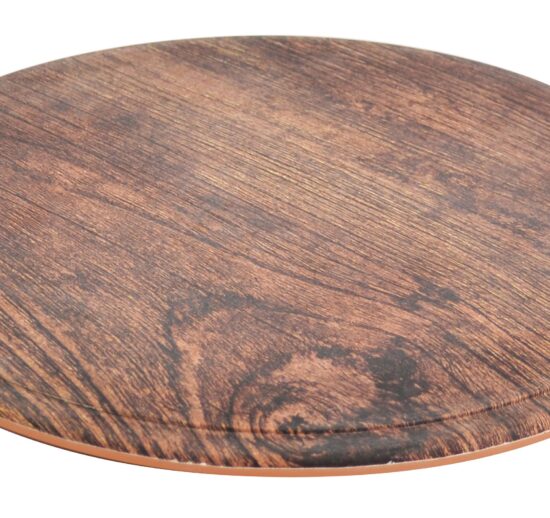 PLATEAU ROND EN MELAMINE IMITATION BOIS