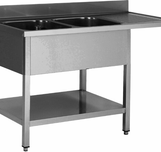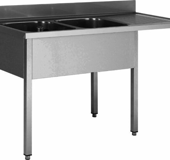 PLONGE INOX 304 SOUDEE, ENCASTREMENT LV BAC GAUCHE 2 BACS 500X500X300 MM, EGOUTTOIR A DROITE