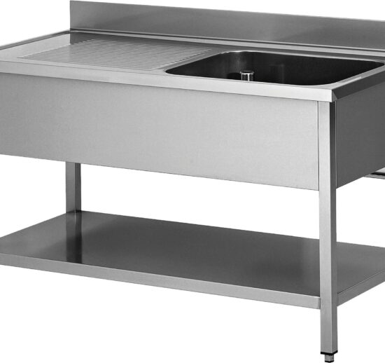 PLONGE INOX SOUDEE, 1 BAC 500X400X250MM EGOUTTOIR A GAUCHE AVEC ETAGERE BASSE