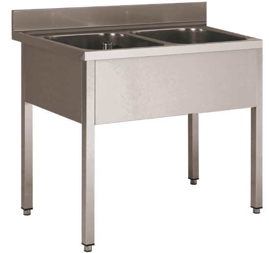 PLONGE INOX SOUDEE, 2 BACS 500X500X300 MM SANS EGOUTTOIR
