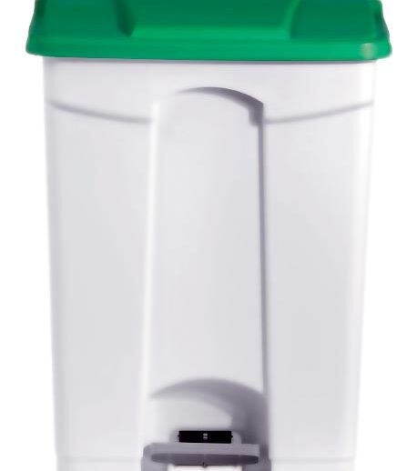 POUBELLE BLANCHE POLYPROPYLENE 90L COUVERCLE VERT ROULANTE, COUVERCLE VERT