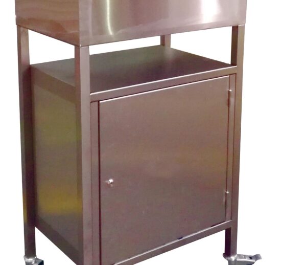 PUPITRE INOX 304, SUR PIETEMENT AVEC ROULETTES CHAPE ZINGUEE, SANS FERMETURE A CLEFS