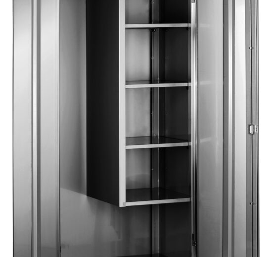 ARMOIRE BALAIS INOX 304 2 PORTES DOUBLEES 1 COTE 3 ETAGERES REGLABLES + 1 FIXE