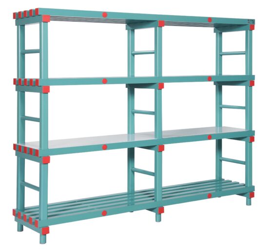 RAYONNAGE PLASTIQUE CHARGE LOURDE, 4 NIVEAUX PROFONDEUR 500