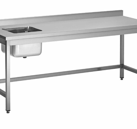 TABLE DU CHEF CENTRALE INOX 304 SOUDEE, 1 BAC 400X400X250 A GAUCHE