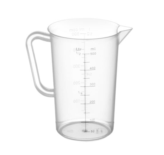 POT MESUREUR EN POLYPROPYLENE TRANSLUCIDE AVEC GRADUATIONS, JUSQU’A 100°C