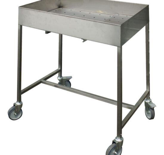 CHARIOT DE DESSOUVIDAGE INOX, PIETEMENT 25X25 MM BAC INOX AVEC POINTE DE DIAMANT AVEC BORDS H-150 M