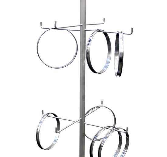 ARBRE A CROCHETS INOX AISI 304, 3 NIVEAUX HAUTEUR 1800 MM, 4 ROULETTES CHAPE ZINGUEE