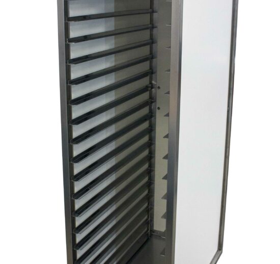 ARMOIRE PARISIEN INOX 304, SUR ROULETTES INOX D.100MM, 20 ETAGES, CORNIERES EP. 1.2 MM