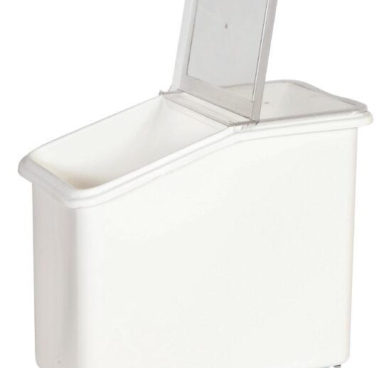 BAC SEL / FARINE, 102L, CONSTRUCTION POLYETHYLENE ALIMENTAIRE, ANGLE RAYONNES, 4 ROULETTES D.100MM