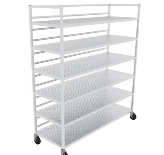 CASIER A BATTERIE 6 NIVEAUX TYPE RESSUAGE 6 PLATEAUX PERFORES, 4 ROULETTES DT 2AF