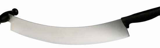 COUTEAU A FROMAGE HOLLANDAIS XL, 2 POIGNEES MANCHES NOIRS, LAME INCURVEE L-430 MM