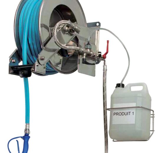 ENROULEUR AUTOMATIQUE INOX , KIT DE DOSAGE 2 PRODUITS, TUYAU DE 20 M, PISTOLET