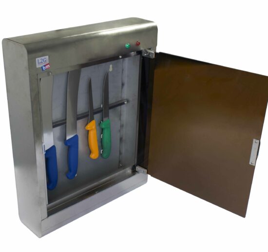 ARMOIRE INOX A STERILISER A AIMANT AVEC TUBE UV 8W STOCKAGE 10 COUTEAUX, PORTE PLEXI, MINUTERIE