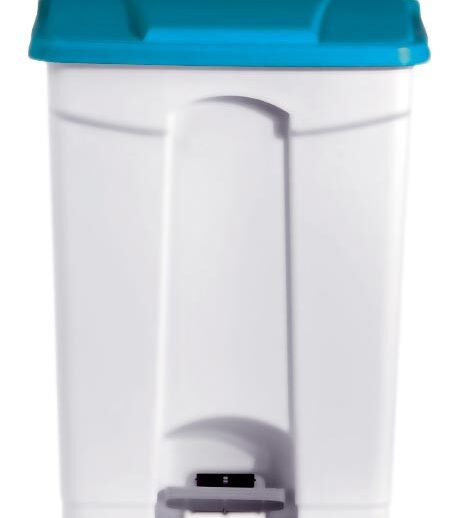 POUBELLE BLANCHE POLYPROPYLENE 90L COUVERCLE BLEU ROULANTE, COUVERCLE BLEU