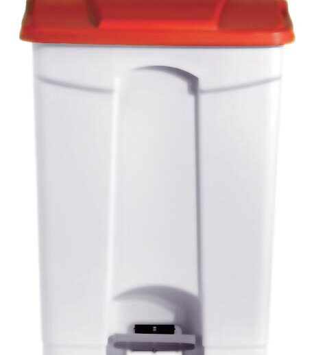 POUBELLE BLANCHE POLYPROPYLENE 90L COUVERCLE ROUGE ROULANTE, COUVERCLE ROUGE