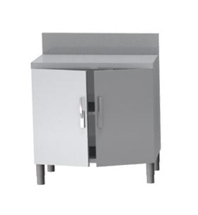 MEUBLE NEUTRE DESSUS INOX 304, 2 PORTES BATTANTES AVEC FERMETURE LOQUETEAU, DOSSERET INOX 150X50 MM