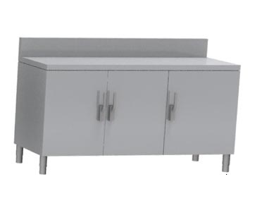 MEUBLE NEUTRE DESSUS INOX 304, 3 PORTES BATTANTES AVEC FERMETURE LOQUETEAU, DOSSERET INOX 150X50 MM