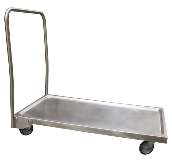 CHARIOT PLATEFORME INOX 304, PLATEAU PLEIN AVEC BARRE DE POUSSEE, CHARGE MAXI: 250 KG
