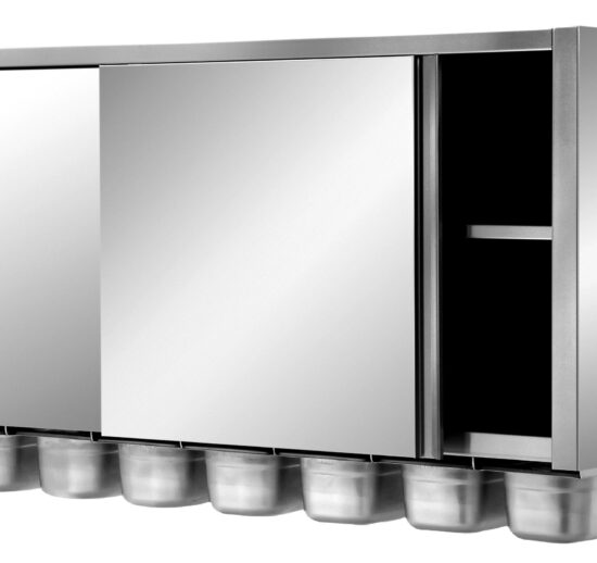 ARMOIRE SUSPENDUE INOX 304 POUR 6 DISTRIBUTEURS A INGREDIENTS GN1/4-100, PORTES COULISSANTES