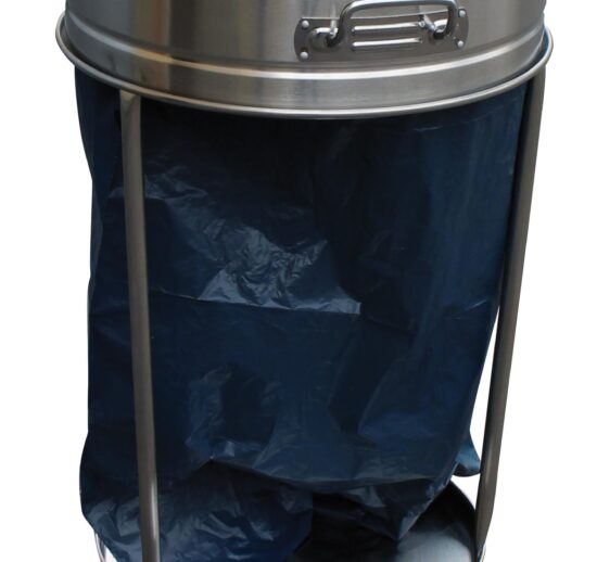 SUPPORT ROULANT INOX POUR SAC POUBELLE 110 L, COMMANDE A PEDALE, AVEC ELASTIQUE