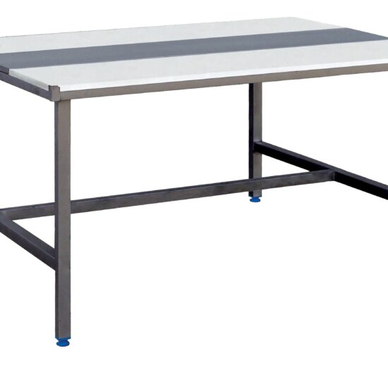 TABLE DECOUPE MIXTE FACE A FACE, CHASSIS INOX 304 AVEC ETAGERE, ALESE INOX 300 MM AU CENTRE,