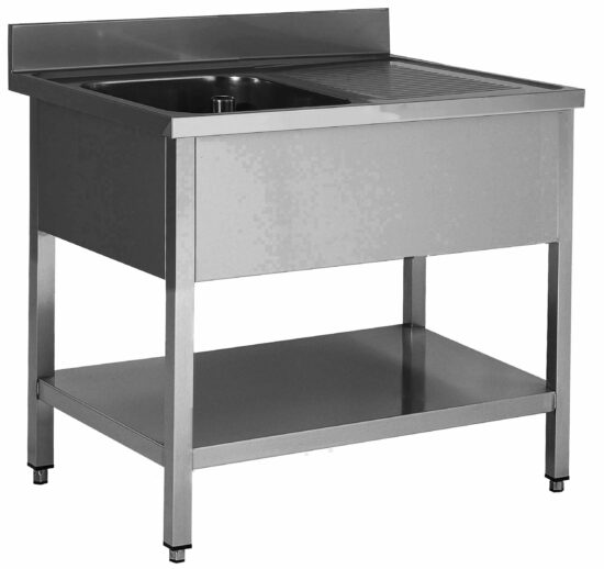 PLONGE INOX 304 DEMONTABLE, 1 BAC 400X400X250 MM PIEDS CARRES, EGOUTTOIR A GAUCHE, ETAGERE BASSE