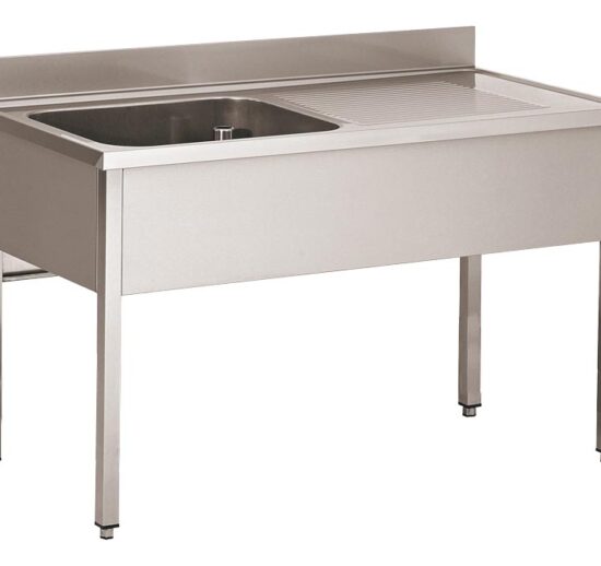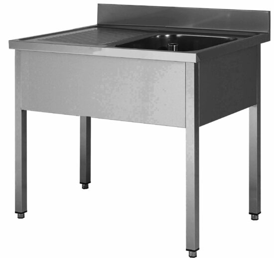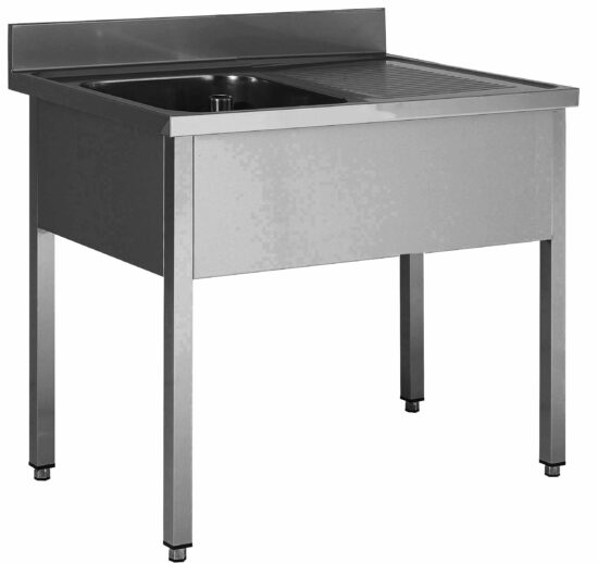 PLONGE INOX 304 DEMONTABLE, 1 BAC 400X500X250 MM PIEDS CARRES, EGOUTTOIR A GAUCHE