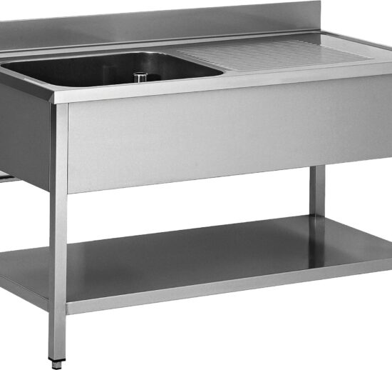 PLONGE INOX 304 DEMONTABLE, 1 BAC 500X400X250 MM PIEDS CARRES, EGOUTTOIR A DROITE , ETAGERE BASSE