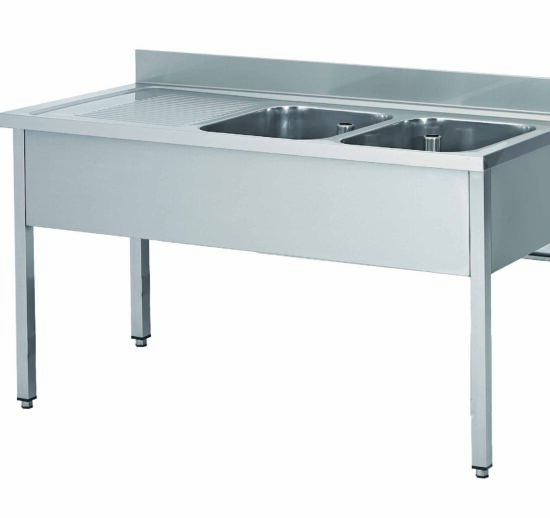 PLONGE INOX 304 DEMONTABLE, 2 BACS 400X400X250 MM PIEDS CARRES, EGOUTTOIR A GAUCHE