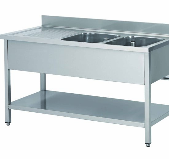 PLONGE INOX 304 DEMONTABLE, 2 BACS 400X400X250 MM PIEDS CARRES, EGOUTTOIR A DROITE , ETAGERE BASSE