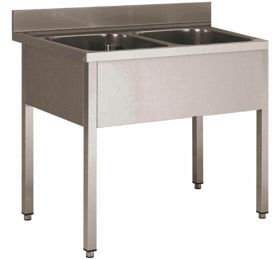 PLONGE INOX 304 DEMONTABLE, 2 BACS 500X400X250 MM PIEDS CARRES, SANS EGOUTTOIR