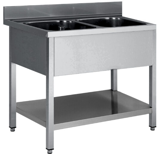 PLONGE INOX 304 DEMONTABLE, 2 BACS 500X500X300 MM PIEDS CARRES, SANS EGOUTTOIR , ETAGERE BASSE